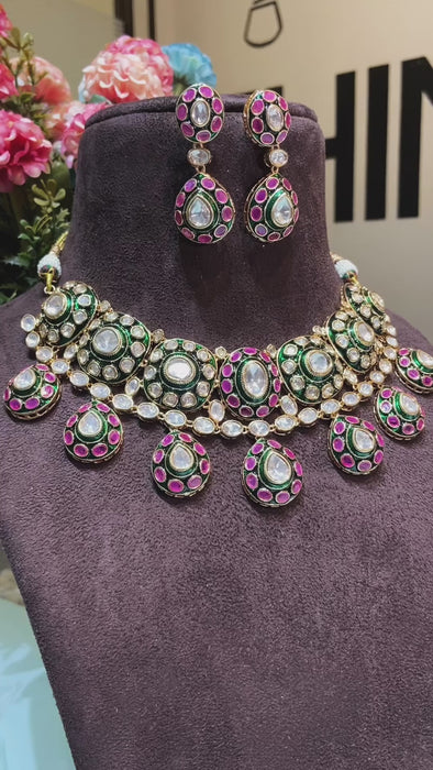 Expertly crafted, the MEENA POLKI SET features an elegant, enamel necklace and coordinating earrings. With a lightweight design, this set is comfortable to wear while still making a statement. Add some polish to any outfit with this refined set.