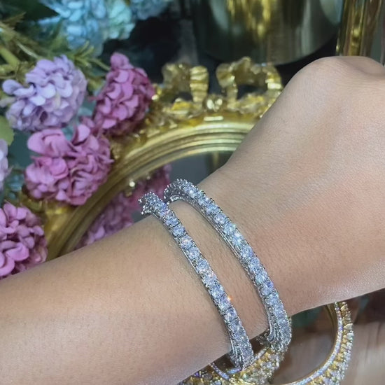Upgrade your daily accessory game with our Solitaire Bangles. These 4mm stone size bangles are perfect for everyday wear, adding a touch of classic elegance to any outfit. Made with high-quality materials, our bangles are the perfect addition to your jewelry collection.
