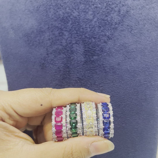 Choose Coloured Eternity Rings to create a bold look with effortless impact. With breathtaking designs and colors, these rings will be guaranteed to stand out in a crowd. The lightweight design allows you to stack them for an eye-catching look, or wear one solo to anchor any outfit. Find your correct size and order today.
